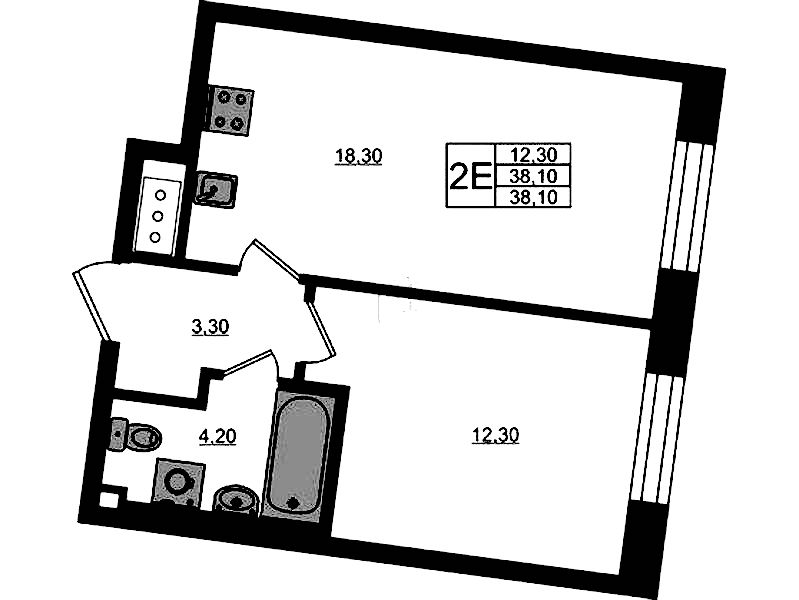 - Площадь38,1 м2