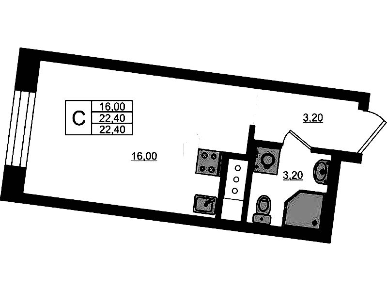 - Площадь22,4 м2