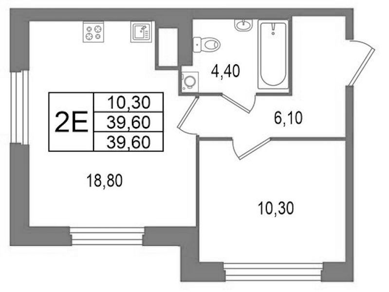 Однокомнатная квартира на 9-ом этаже 39,6 кв.м