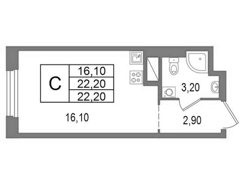 • Площадь22,2 м2