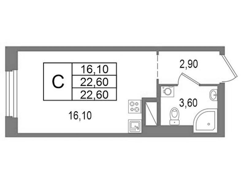 Квартира-студия на 10-ом этаже 22,6 кв.м