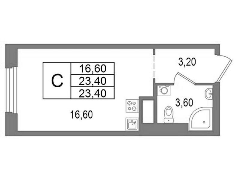 Квартира-студия на 5-ом этаже 23,4 кв.м