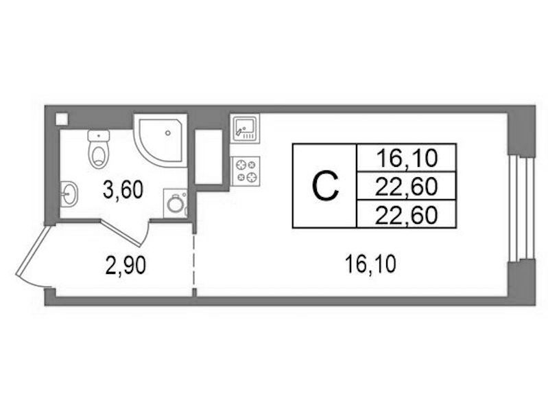 Квартира-студия на 10-ом этаже 22,6 кв.м
