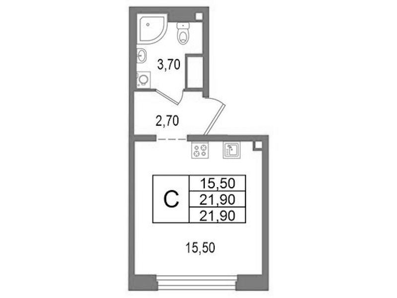Квартира-студия на 10-ом этаже 21,9 кв.м