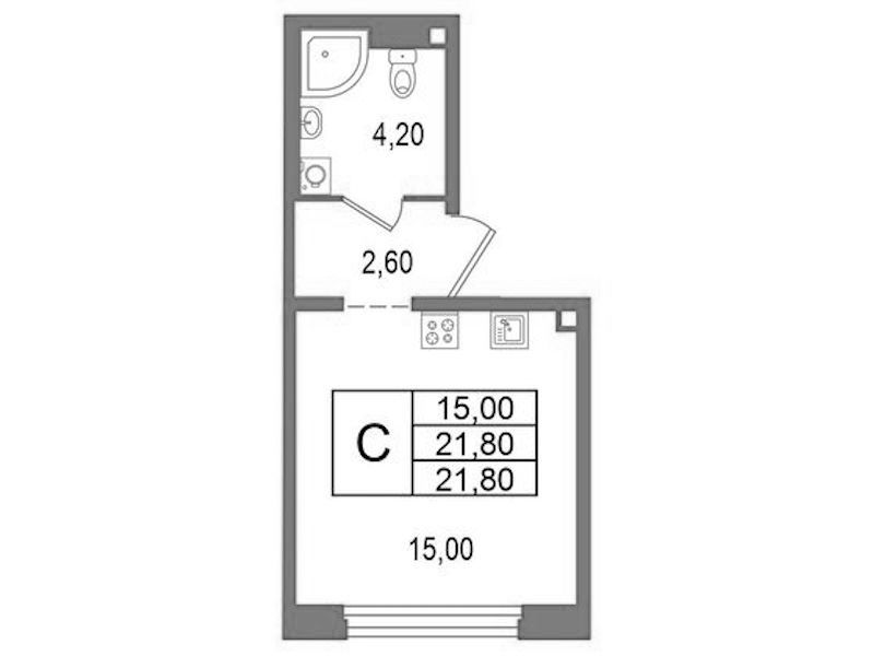 Квартира-студия на 3-ем этаже 21,8 кв.м