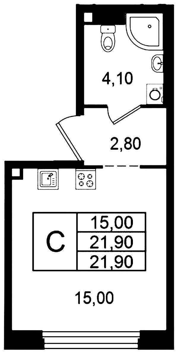 Квартира-студия на 3-ем этаже 21,9 кв.м