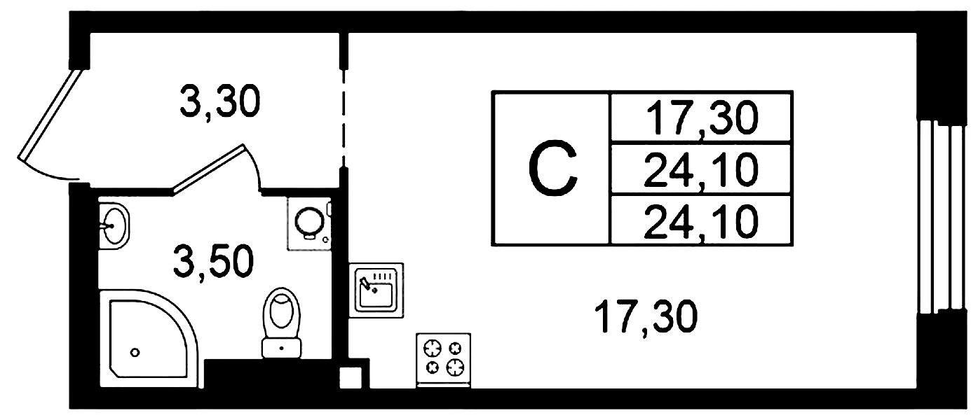 Квартира-студия на 3-ем этаже 24,1 кв.м