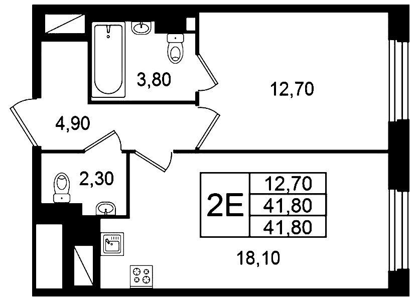 • Площадь41,8 м2
