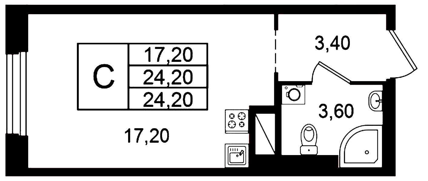 Квартира-студия на 11-ом этаже 24,2 кв.м