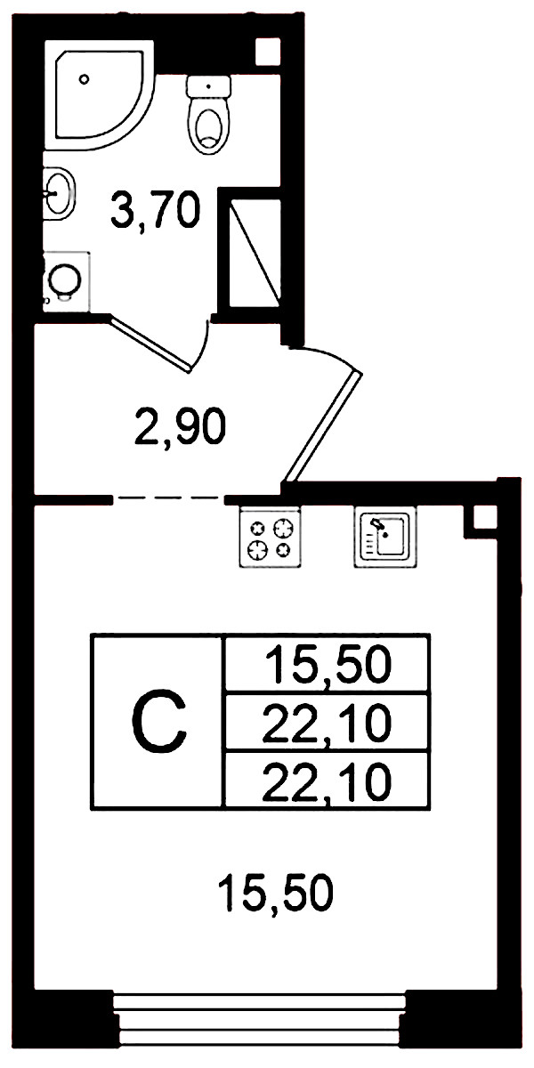 Квартира-студия на 11-ом этаже 22,1 кв.м