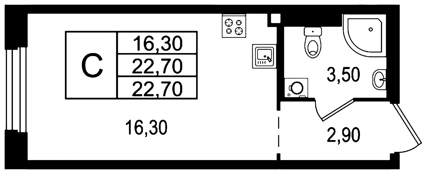 • Площадь22,7 м2