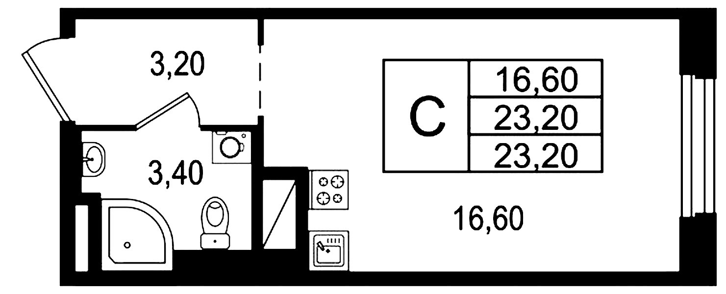 Квартира-студия на 7-ом этаже 23,2 кв.м