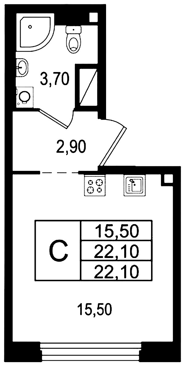 • Площадь22,1 м2