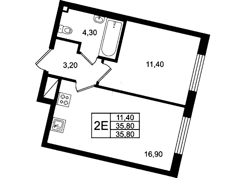 - Площадь35,8 м2