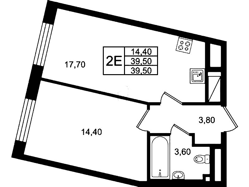 Однокомнатная квартира на 4-ом этаже 39,5 кв.м