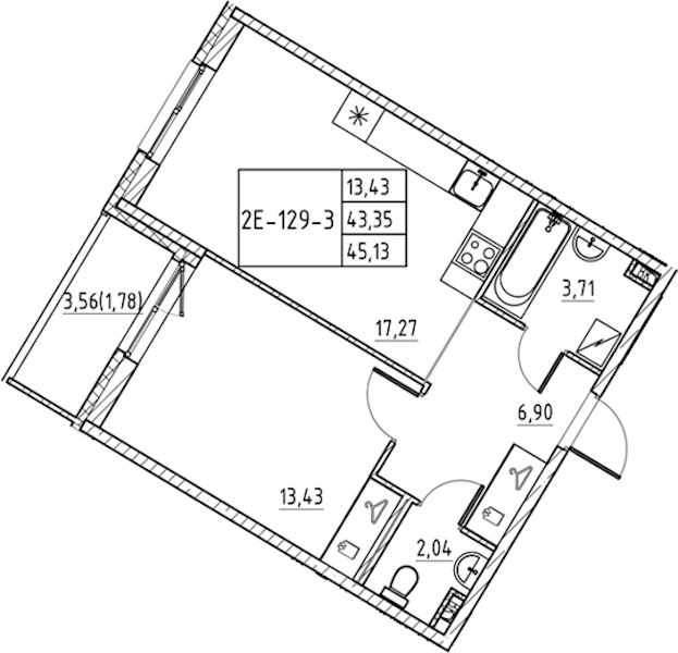 - Площадь45,13 м2