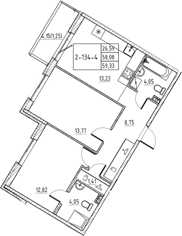 - Площадь59,33 м2
