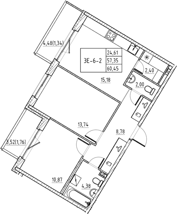 - Площадь60,45 м2