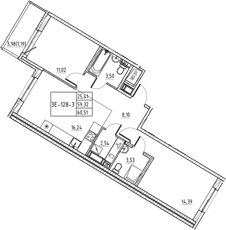 • Площадь60,51 м2