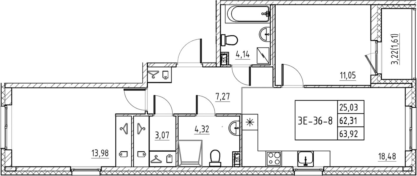 - Площадь63,92 м2