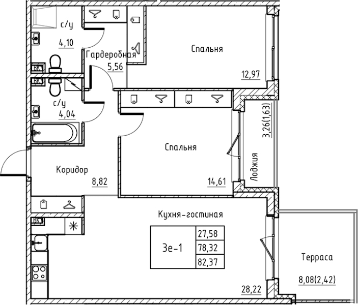 • Площадь82,37 м2