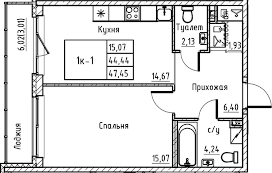 - Площадь47,45 м2