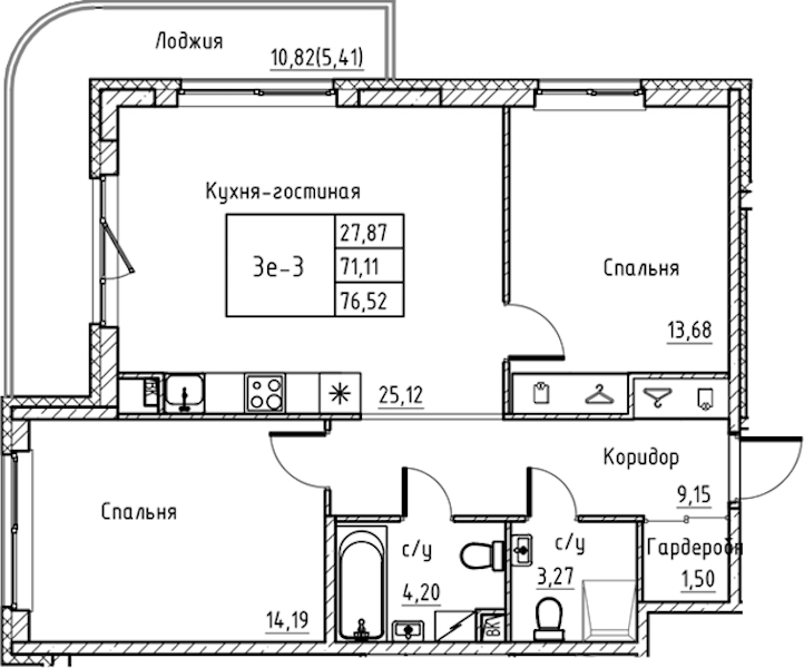 - Площадь76,52 м2