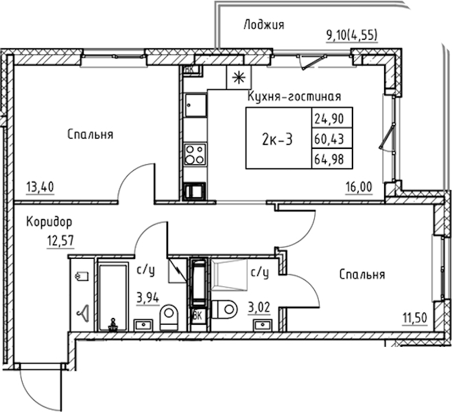 • Площадь64,98 м2