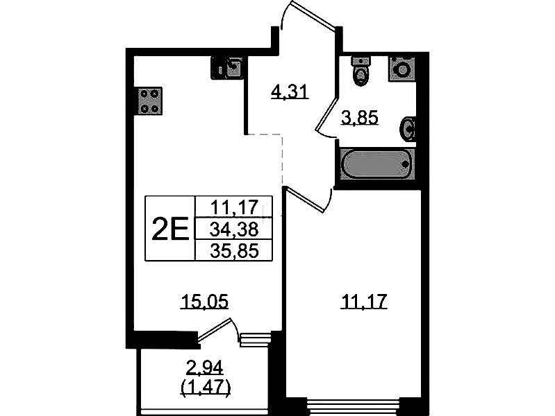 - Площадь35,85 м2