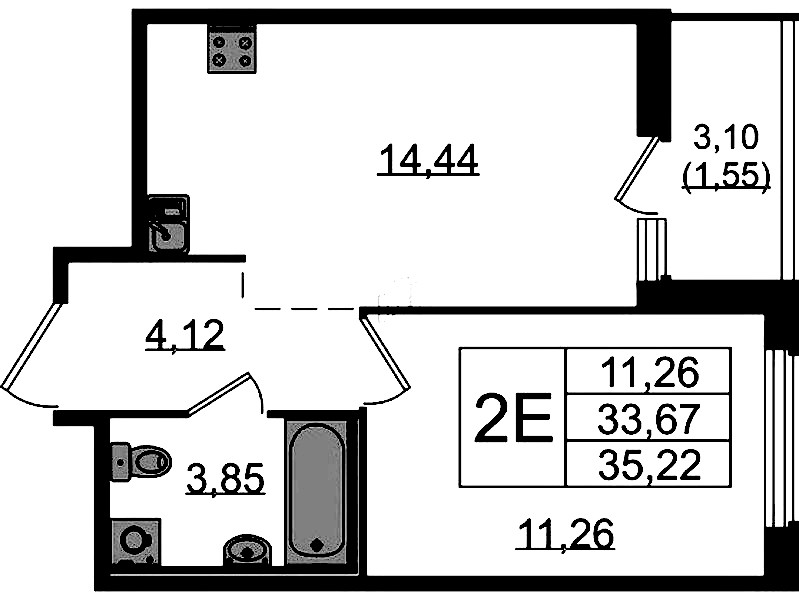 • Площадь кухни14,44 м2