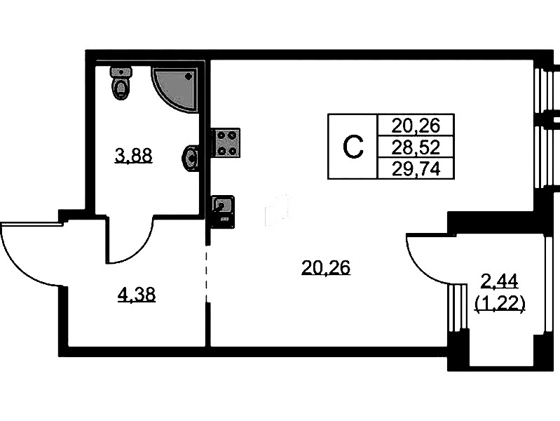 Квартира-студия на 14-ом этаже 29,74 кв.м