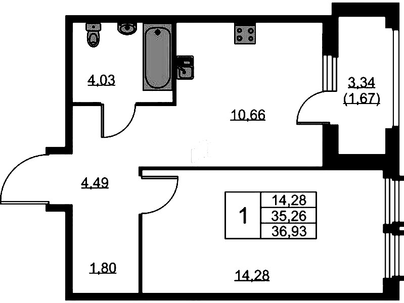 - Площадь36,93 м2