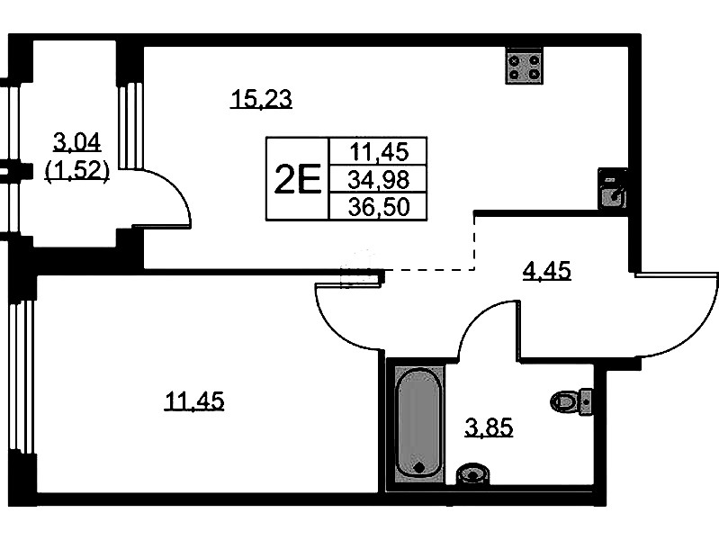 Однокомнатная квартира на 15-ом этаже 36,5 кв.м