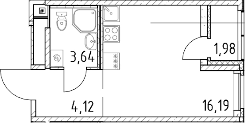 Квартира-студия на 14-ом этаже 23,95 кв.м