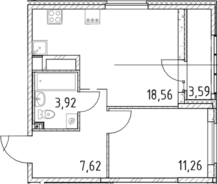 Однокомнатная квартира на 20-ом этаже 41,36 кв.м