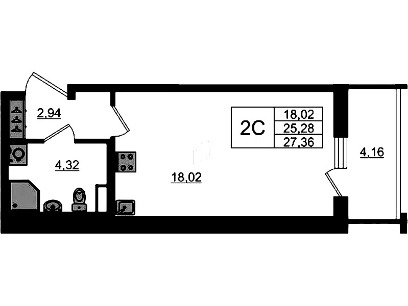 Квартира-студия на 2-ом этаже 25,28 кв.м