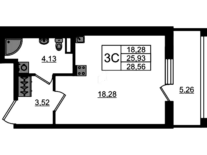 • Площадь25,93 м2
