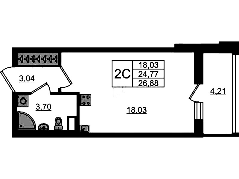 Квартира-студия на 2-ом этаже 24,77 кв.м