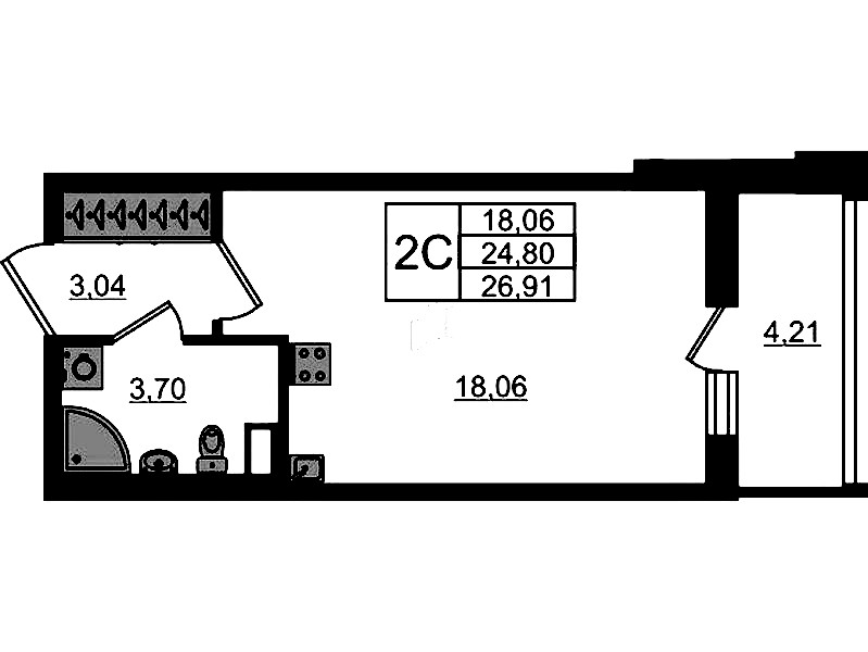 - Площадь24,8 м2