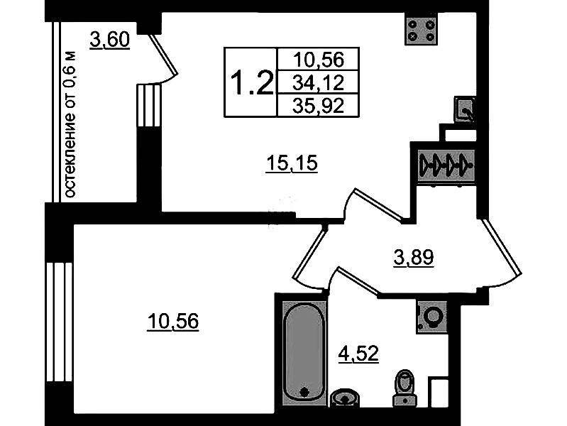 - Площадь34,12 м2