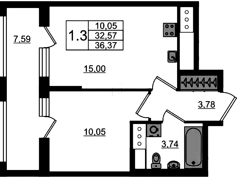 • Площадь32,57 м2