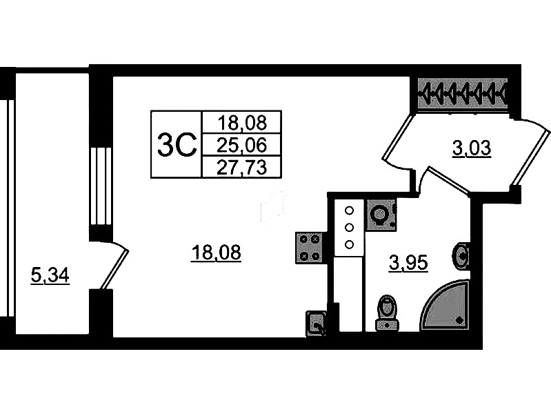 - Площадь25,06 м2