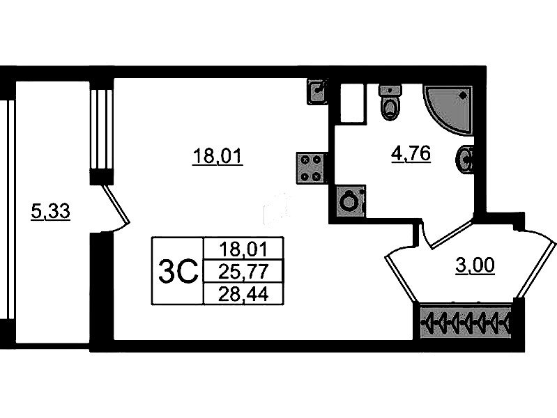 • Площадь25,77 м2