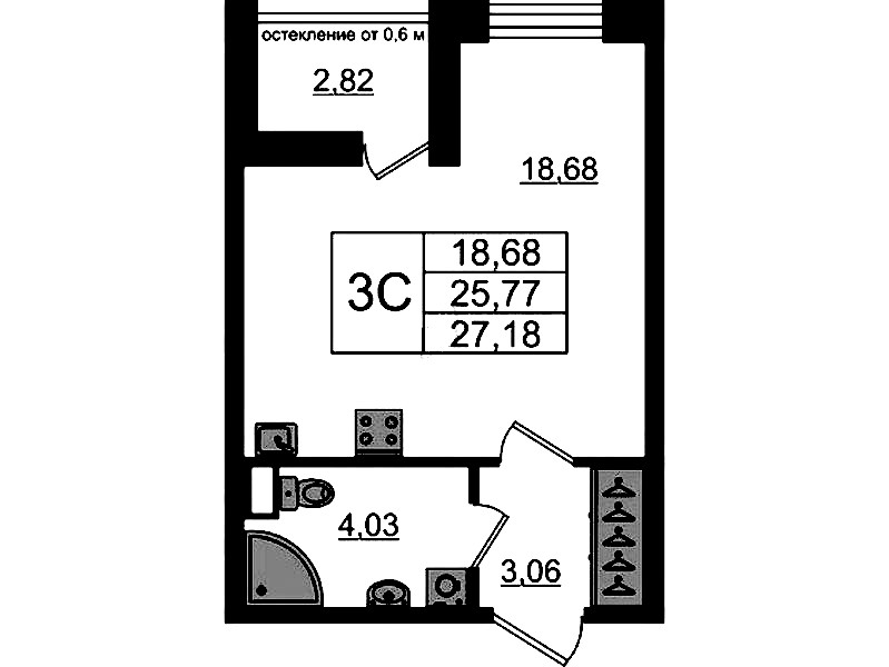 - Площадь25,77 м2