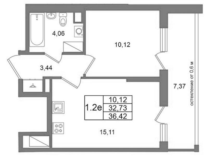 - Площадь кухни15,11 м2