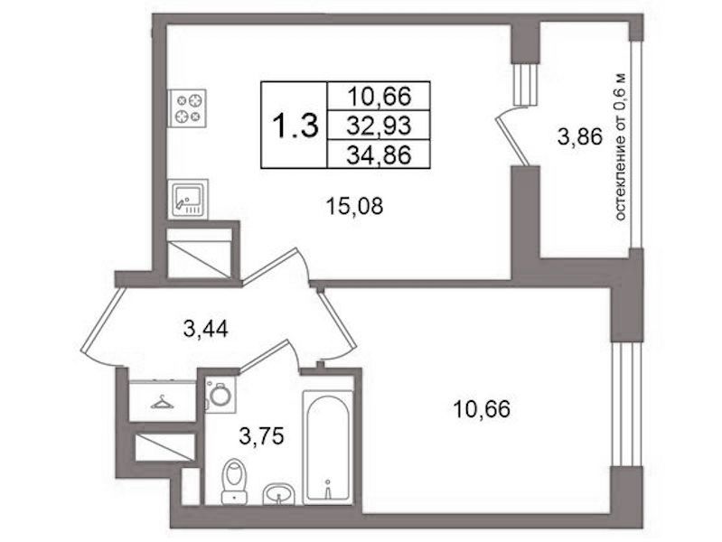 • Площадь32,93 м2