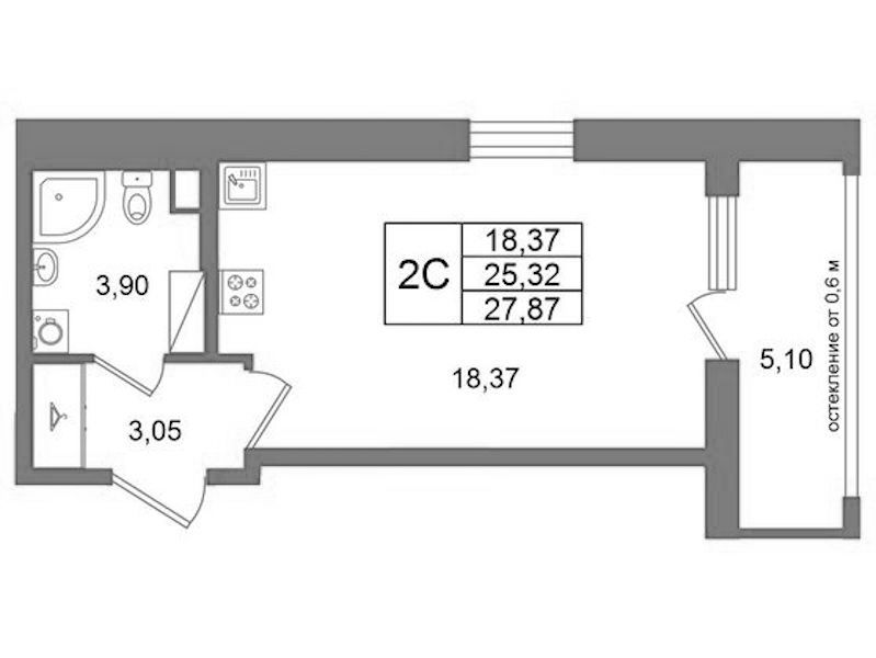 Квартира-студия на 18-ом этаже 25,32 кв.м
