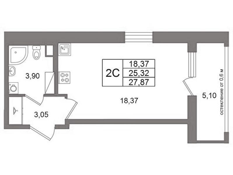 Квартира-студия на 13-ом этаже 25,32 кв.м