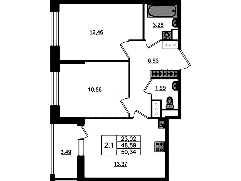 • Площадь48,59 м2