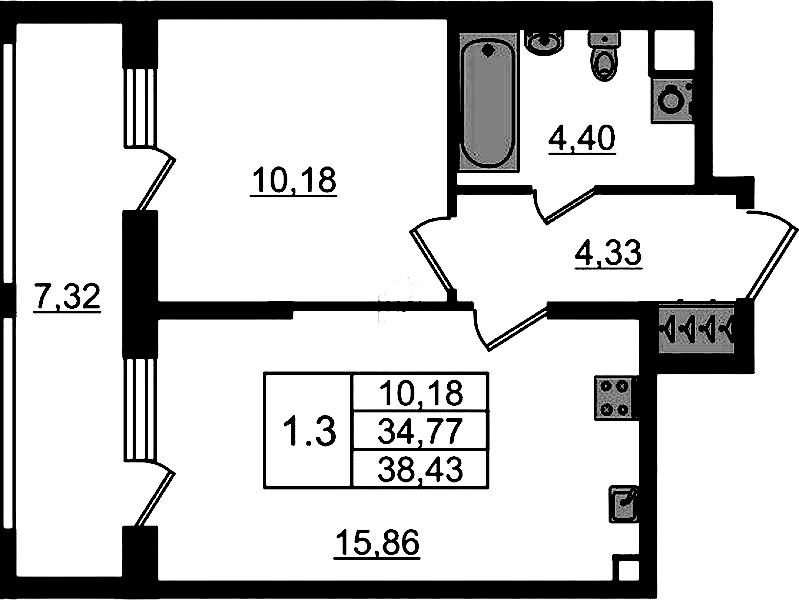 • Площадь34,77 м2